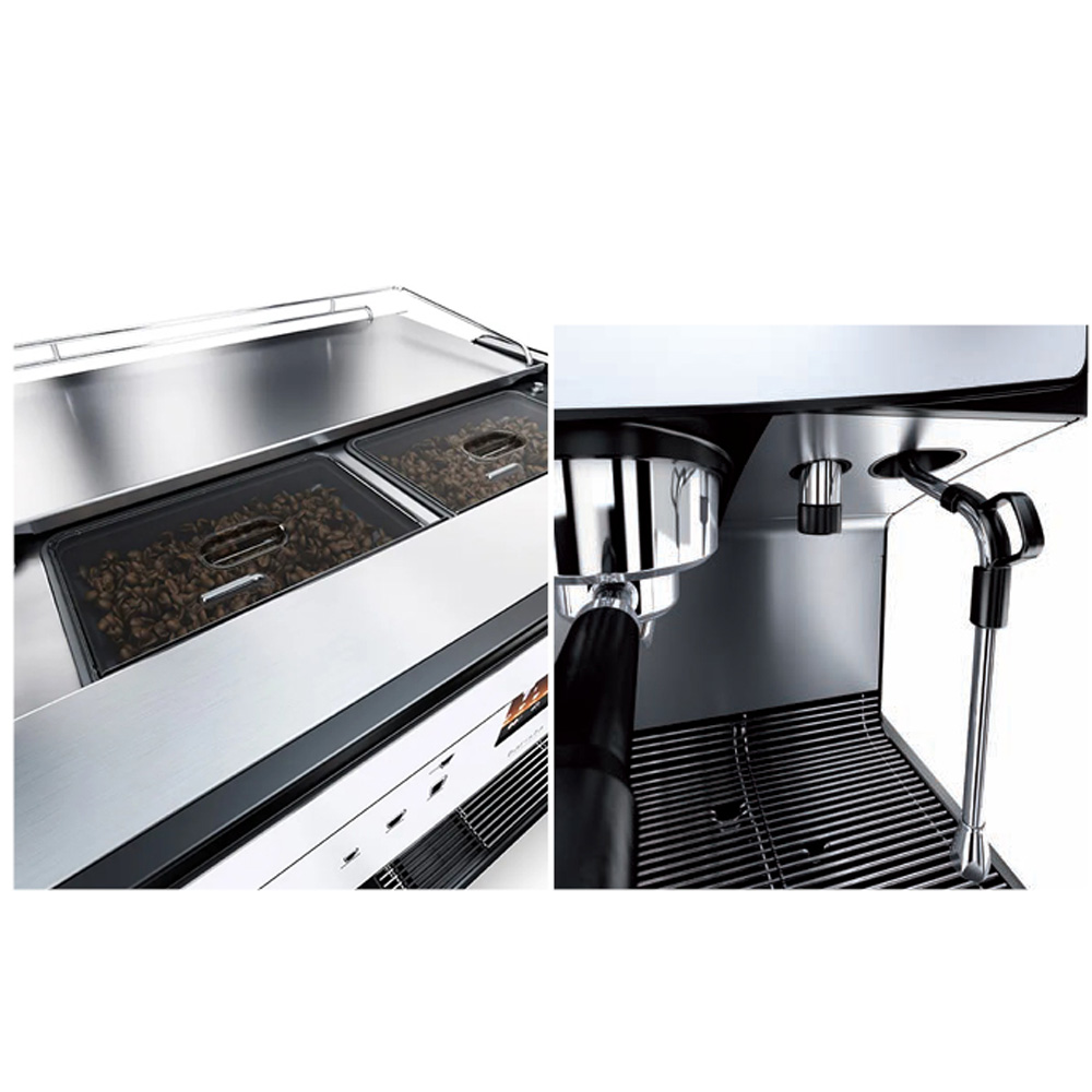 A bean to cup machine which looks and operates like a traditional espresso machine Two Group duel bean hopper… All of the theatre with none of the hassle! Makes up to 200 cups per day